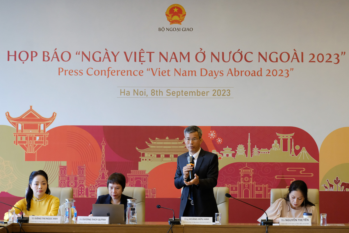 Sáng 8/9, Vụ Ngoại giao Văn hóa và UNESCO (Bộ Ngoại giao) tổ chức họp báo công bố chuỗi sự kiện Ngày Việt Nam ở nước ngoài 2023. Chương trình năm nay sẽ mang hình ảnh, đất nước và con người Việt Nam đến 3 châu lục. Đây cũng là lần đầu tiên Ngày Việt Nam ở nước ngoài được tổ chức tại Nam Phi.