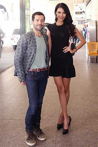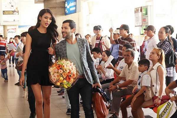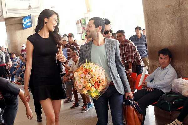 Dù rất bận rộn với lịch trình chuẩn bị cho cuộc thi Hoa hậu Thế giới, nhưng sáng nay Hoa khôi Áo dài 2014 vẫn dậy rất sớm ta sân bay từ tinh mơ sáng để chờ đón Nhà thiết kế tài hoa Alexis Mabille tới Việt Nam với một bó hoa rất đẹp.