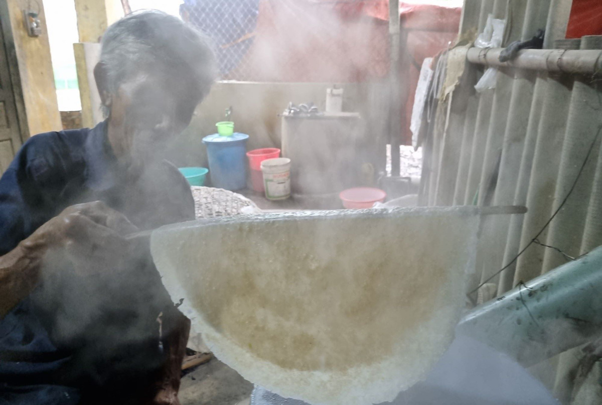 Ông Đặng Bê, người có gần 50 gắn bó với nghề làm bánh tráng tại làng nghề Túy Loan.