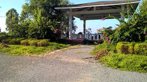 Kế bên là căn nhà hoang cửa đóng then cài, vắng lặng đến rợn người. Theo bà chủ quán nước bên đường, đó là căn nhà tạm làm nơi tá túc cho bảo vệ, nhưng thỉnh thoảng người này mới đến rồi bỏ về.