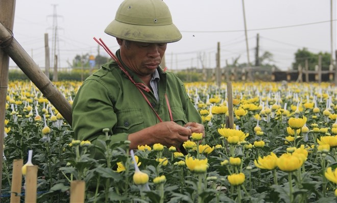 Trồng hoa là công việc vất vả, nhất là vào vụ Tết như hiện nay. Người dân Tây Tựu ngày nào cũng phải có mặt ở ngoài đồng để chăm sóc hoa, cẩn thận theo dõi dự báo thời tiết để kịp thắp đèn hay cắt sớm cho vào kho đông lạnh để bảo quản.