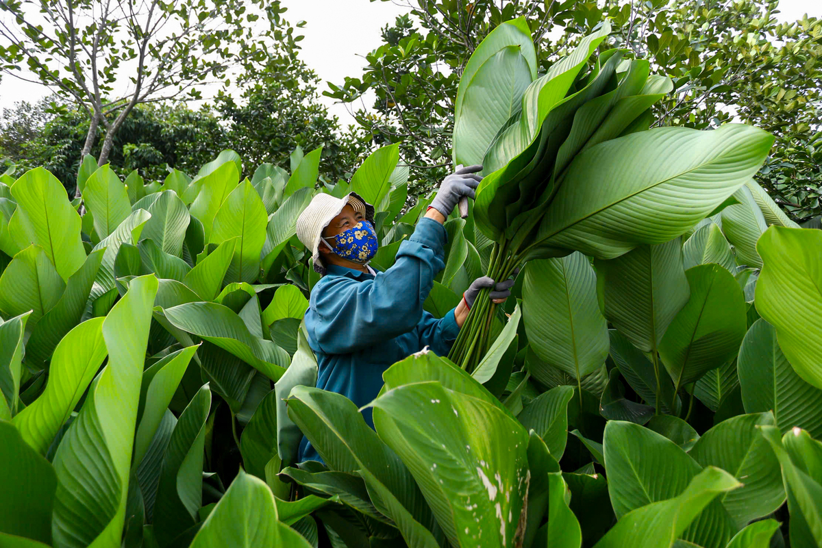 Khi thu hoạch, người dân dùng dao bổ cau cắt sát gốc lá, giúp cây nhanh phục hồi để sau Tết, sang tháng Giêng, lứa lá non tiếp tục sinh trưởng.
