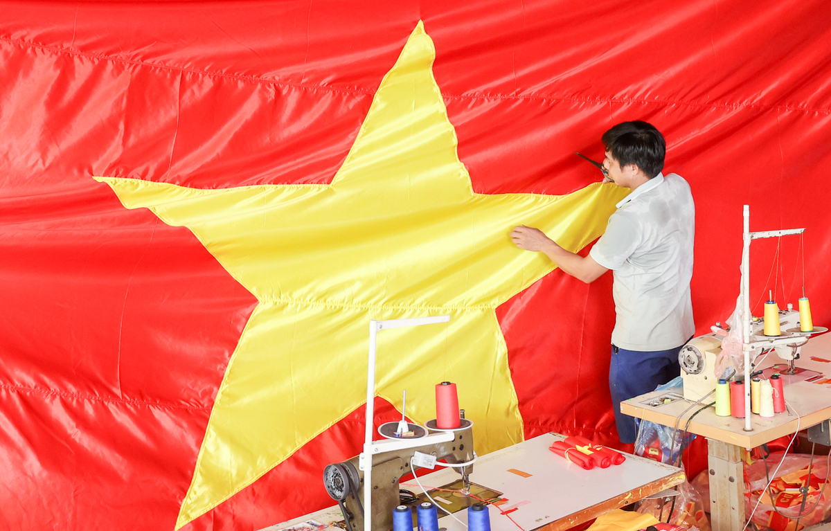 Hiện tại, xưởng may nhà anh Phục đang rất bận rộn, đẩy nhanh tiến độ làm việc để kịp trả đơn hàng cho khách, và phân phối cờ Tổ quốc đi các tỉnh thành trên cả nước, thậm chí có nhiều đơn hàng chuyển ra nước ngoài. "Vào những ngày sát dịp lễ 2/9, mọi người trong gia đình phải tôi làm việc ngày đêm mới đủ hàng cung ứng ra thị trường. Trung bình mỗi dịp lễ, chỉ riêng cờ Tổ quốc gia đình tôi bán được hơn 50.000 chiếc, ngoài ra còn băng rôn, khẩu hiệu với đủ loại kích thước khác nhau", anh Phục chia sẻ.