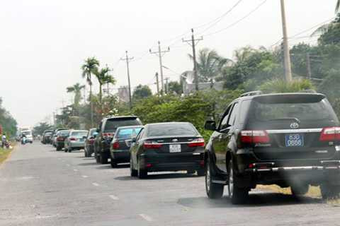 | Phần lớn xe công trong đoàn là xe biển số “VIP” - Ảnh: Tiến Trình |