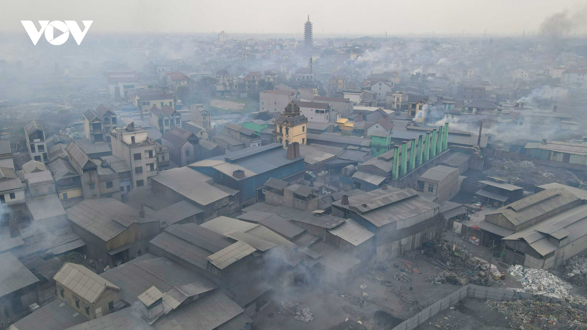 Tại làng nghề Mẫn Xá (Yên Phong, Bắc Ninh) gần 1000 hộ dân, trong đó 1/3 số hộ có lò đúc nhôm, môi trường ở đây thường xuyên bị bao phủ bởi lượng khói bụi dày đặc.