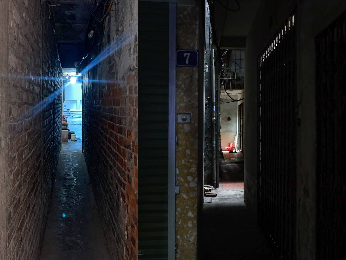 Dọc hai bên ngách, các ngôi nhà được xây đua ra để tận dụng không gian, khiến trong ngách chỉ đủ một khe nhỏ để ánh sáng len lỏi vào. Phía bên trên, dây điện chằng chịt, tạo mối nguy lơ lửng ngay trên đầu người.