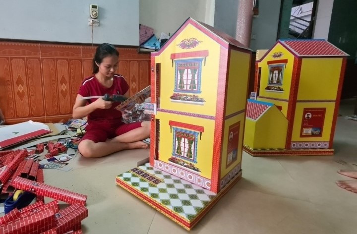 Những ngày này, gia đình anh Nguyễn Ngọc Duy làm được từ 150 đến 200 bộ đồ dùng cá nhân gồm 17 món đồ như ti vi, tủ lạnh, máy giặt, điều hòa...