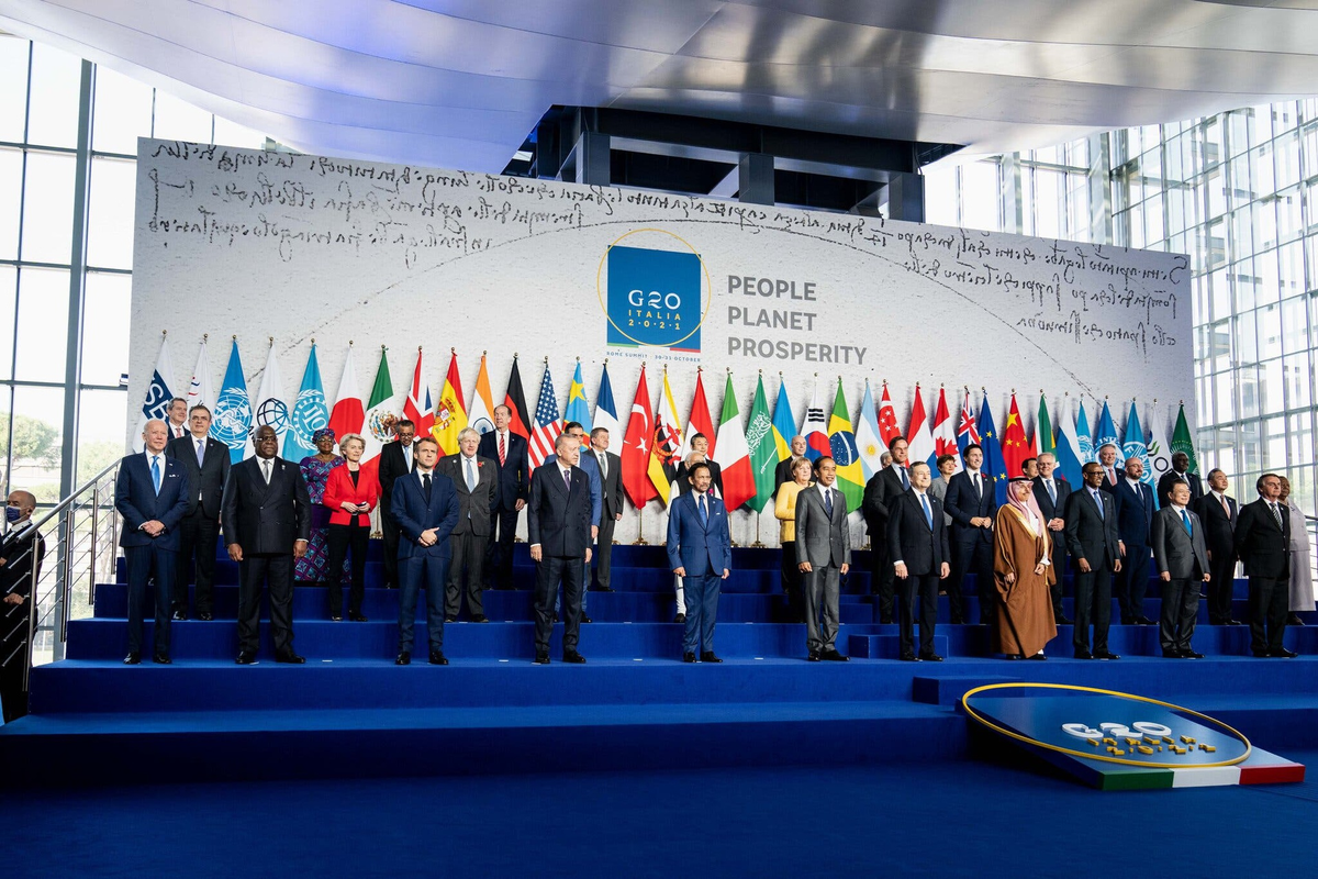 Lãnh đạo các nền kinh tế G20 chụp ảnh tập thể tại hội nghị thượng đỉnh G20 tại Rome hôm 30/10. (Ảnh: New York Times)