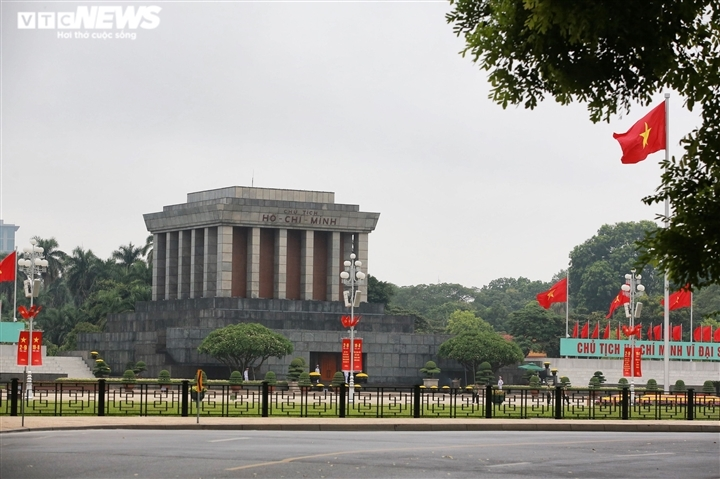 Cờ đỏ sao vàng tung bay tại quảng trường Ba Đình trong Ngày Quốc khánh 2/9/2021.