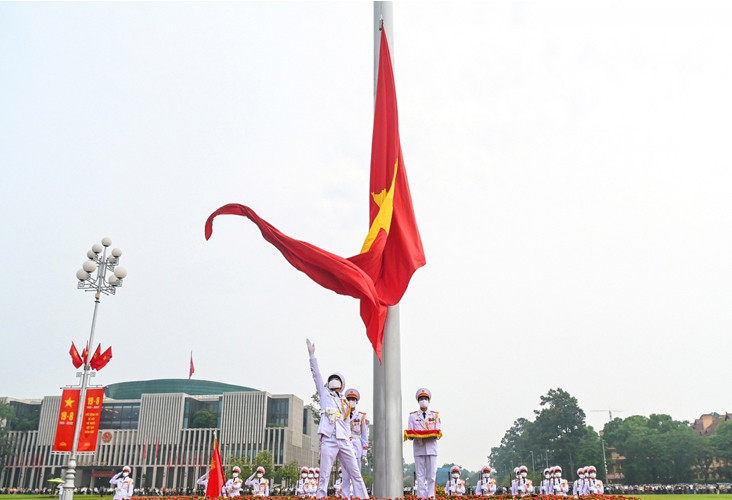 Lễ thượng cờ tại quảng trường Ba Đình. (Ảnh: Quang Trung).