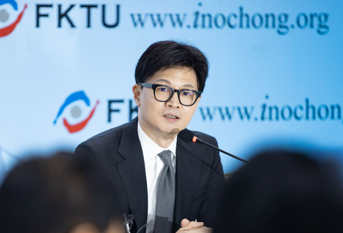 Ông Han Dong-hoon, lãnh đạo đảng Quyền lực Nhân dân, tổ chức cuộc họp tại trụ sở công đoàn ở Seoul, Hàn Quốc. (Ảnh: Getty)