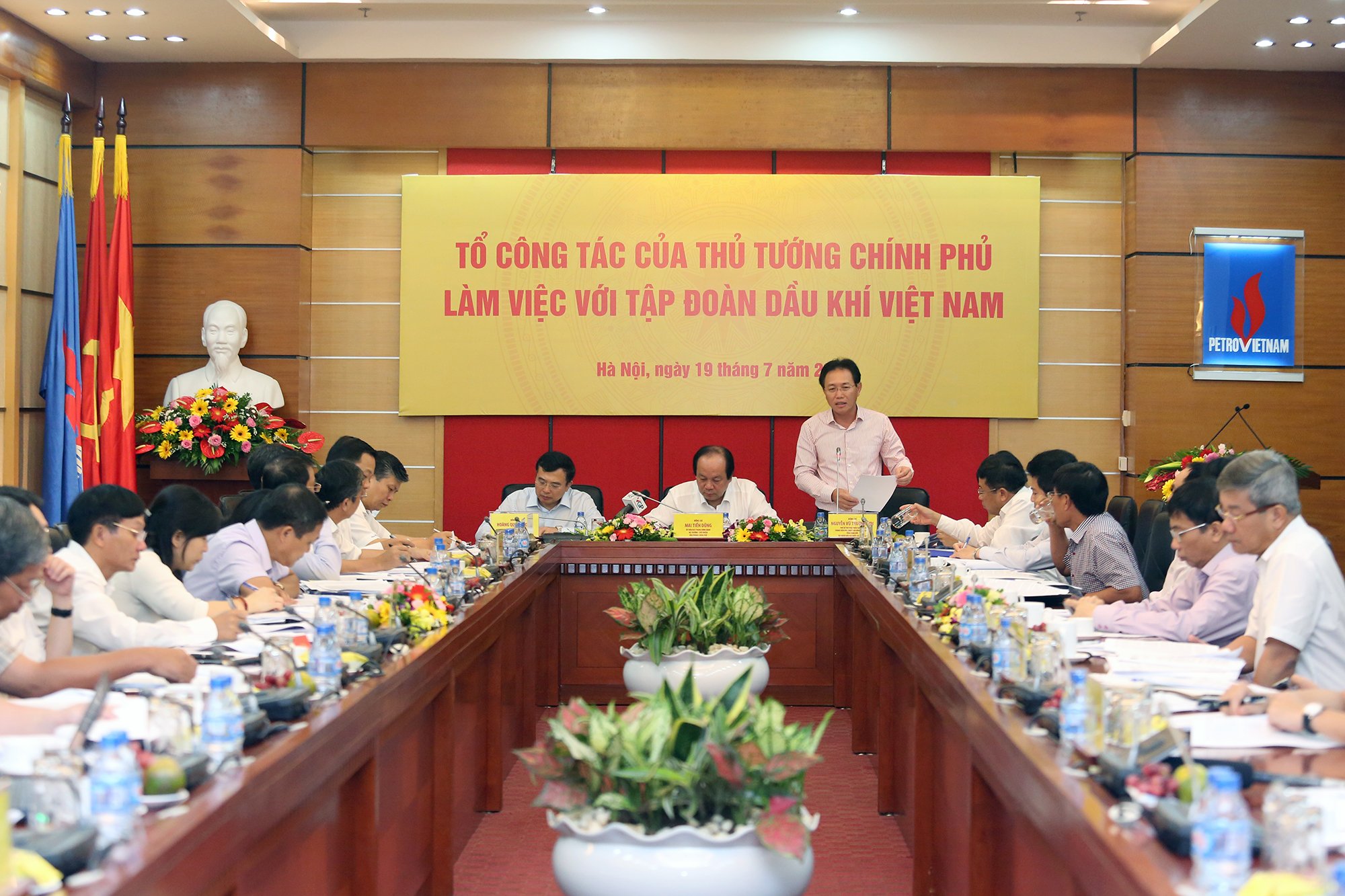 Mở đầu buổi làm việc, Bộ trưởng Mai Tiến Dũng đã chuyển lời thăm hỏi, động viên và khen ngợi PVN của Thủ tướng Nguyễn Xuân Phúc: “Thủ tướng nói rằng trong lúc này, PVN gặp nhiều khó khăn nhất, nhưng càng khó khăn càng phải quyết tâm lớn nhất, đoàn kết, thống nhất, vững tin. Rất mừng là trong 6 tháng đầu năm 2017, PVN đã hoàn thành tốt các chỉ tiêu sản xuất kinh doanh”.