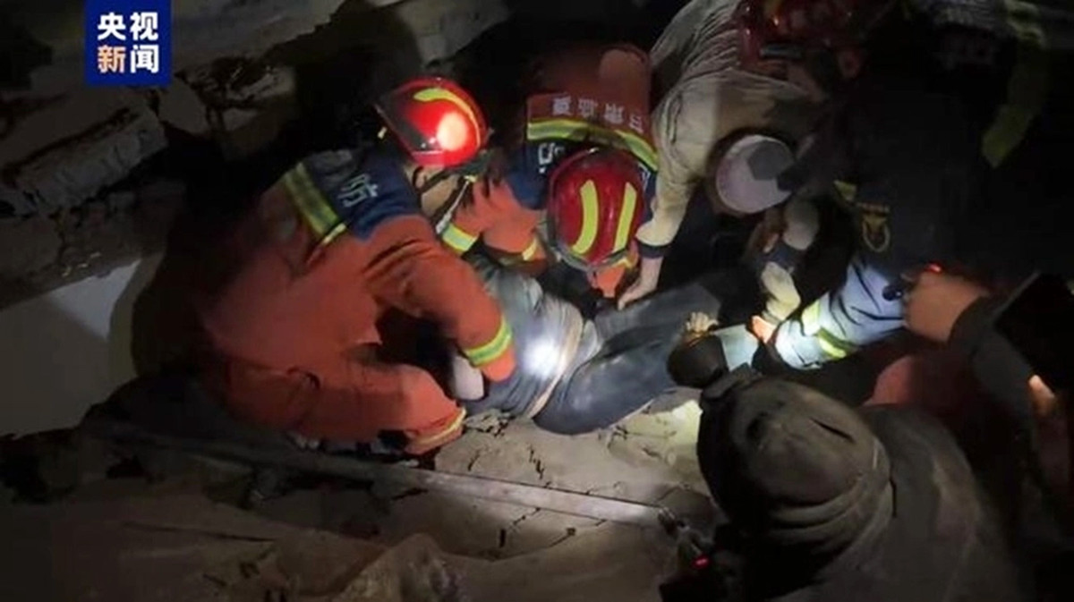 Hình ảnh cứu trợ động đất tại Cam Túc trên Đài Truyền hình Trung ương Trung Quốc (Ảnh: CCTV)