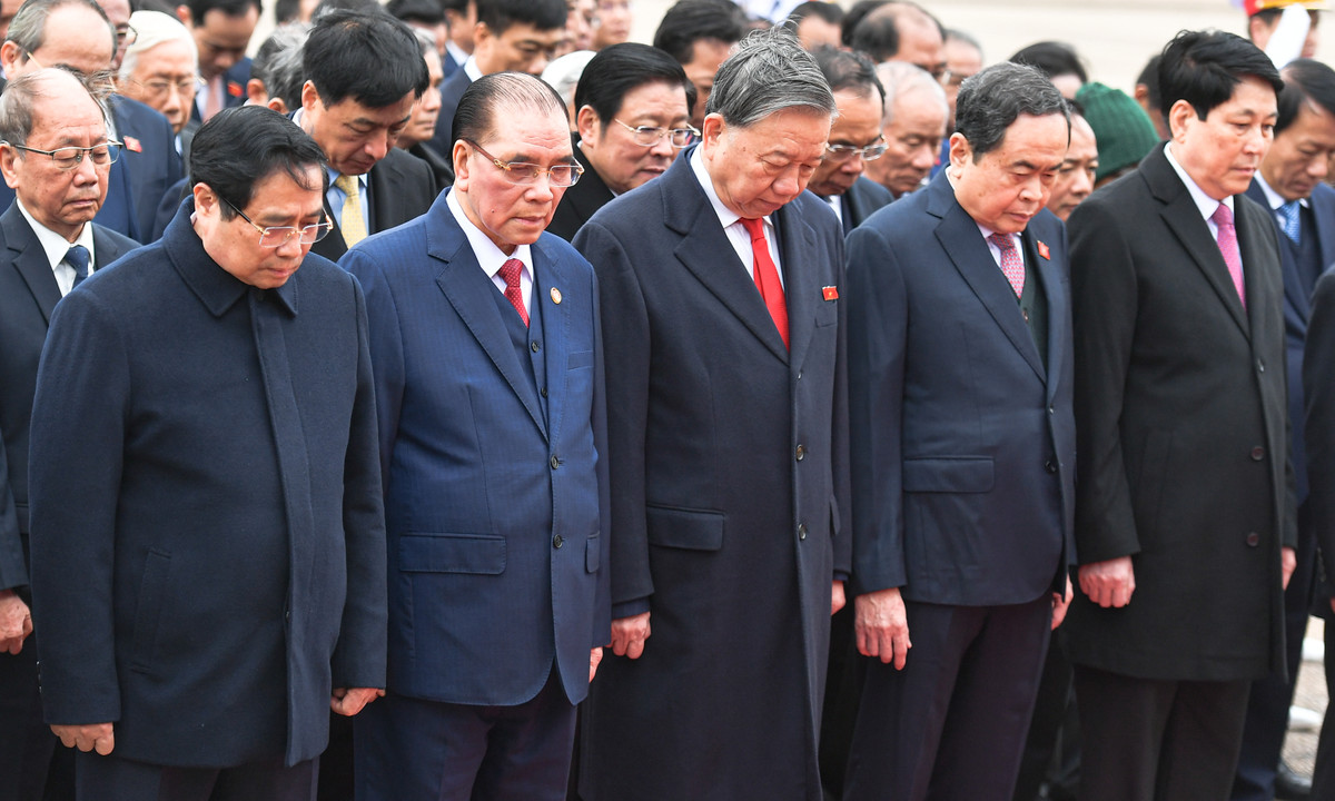 Các lãnh đạo, nguyên lãnh đạo Đảng, Nhà nước thành kính tưởng nhớ Chủ tịch Hồ Chí Minh.