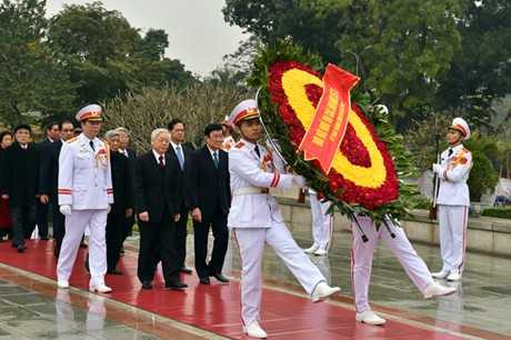 Nhân kỷ niệm 85 năm thành lập Đảng Cộng sản Việt Nam, sáng 2/2, các đồng chí lãnh đạo Đảng, Nhà nước, Mặt trận Tổ quốc Việt Nam vào Lăng viếng Chủ tịch Hồ Chí Minh và dâng hương tưởng niệm các anh hùng liệt sĩ.