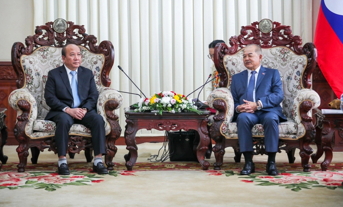 Ủy viên Bộ Chính trị, Phó Thủ tướng Lào Kikeo Khaykhamphithoun tiếp thân mật Đoàn công tác Đài Tiếng nói Việt Nam do Phó Tổng Giám đốc Trần Minh Hùng dẫn đầu.