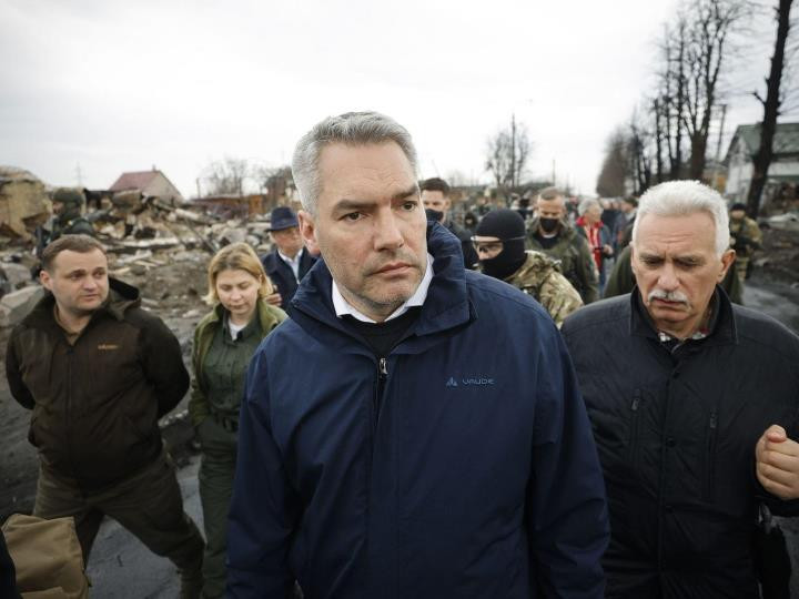 Cùng ngày, ông Nehammer đã đến thăm thị trấn Bucha, ngoại ô Kiev, nơi Ukraine và các nước phương Tây cáo buộc có hàng trăm thường dân được tìm thấy đã thiệt mạng sau khi lực lượng Nga rút lui.