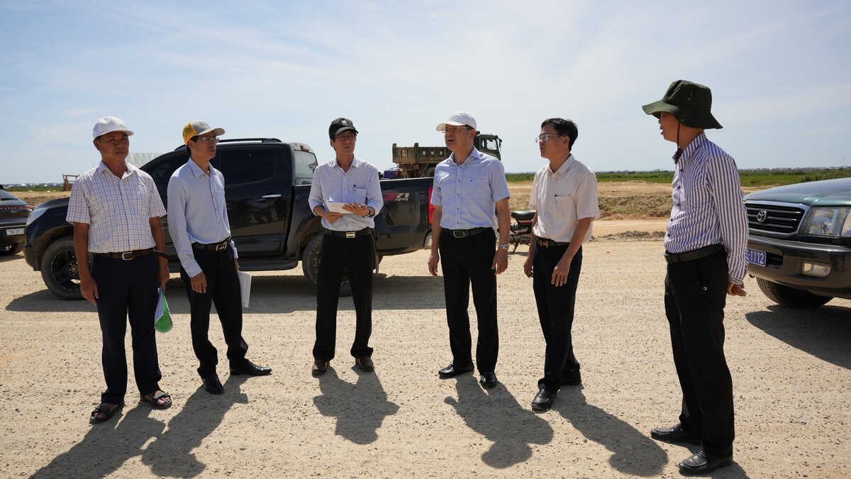 Ông Hoàng Hải Minh (thứ 4 trừ trái qua), Phó Chủ tịch UBND Thừa Thiên - Huế trực tiếp kiểm tra, chỉ đạo tại công trường dự án Chợ Mai - Tân Mỹ. (Ảnh: Ngọc Minh)