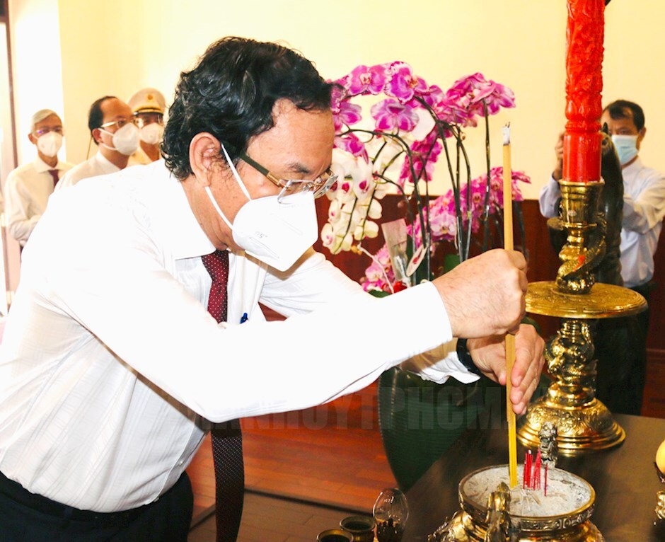 Nhân Kỷ niệm 76 năm Ngày Cách mạng Tháng Tám (19/8/1945 - 19/8/2021), Ngày Sài Gòn khởi nghĩa giành chính quyền (25/8/1945 - 25/8/2021) và Ngày Quốc khánh nước Cộng hòa xã hội chủ nghĩa Việt Nam (2/9/1945 - 2/9/2021), sáng 1/9, đoàn đại biểu Thành ủy, HĐND, UBND, Ủy ban MTTQ Việt Nam TP.HCM do Bí thư Thành ủy TP.HCM Nguyễn Văn Nên làm trưởng đoàn đã đến dâng hương, dâng hoa tưởng niệm Chủ tịch Hồ Chí Minh và Chủ tịch Tôn Đức Thắng.