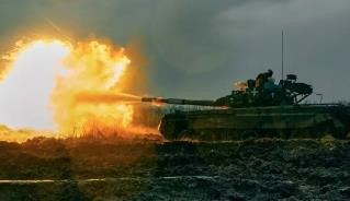 Quân đội Ukraine lái xe tăng ở Bakhmut. (Ảnh: Reuters)