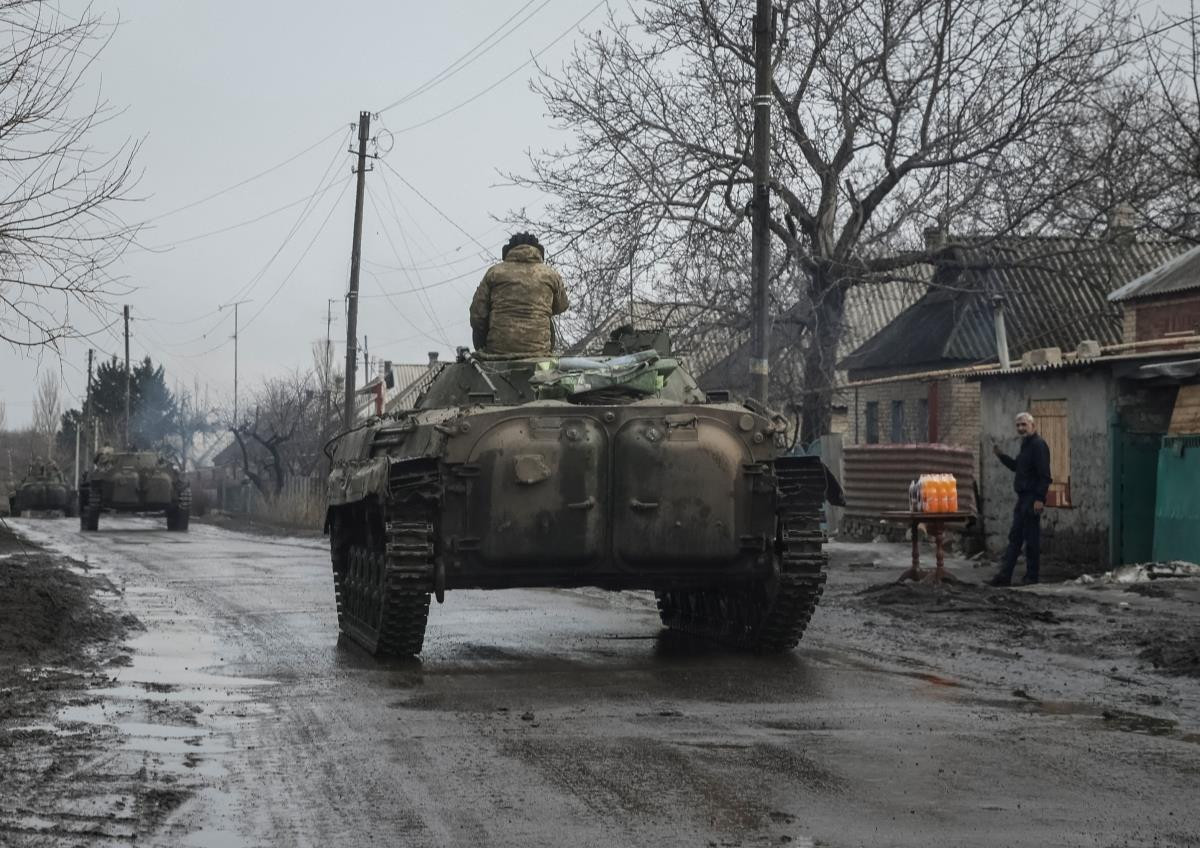 Quân đội Ukraine lái xe chiến đấu bộ binh BMP-2 ở Bakhmut. (Ảnh: Reuters)