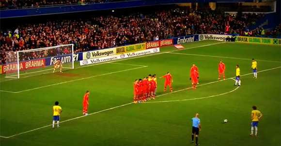 Tình huống diễn ra ở phút 58 khi tuyển Vàng –Xanh được hưởng một quả đá phạt ngoài vòng 16m50. David Luiz là người lãnh trách nhiệm thực hiện quả đá phạt và như thường lệ, trung vệ của Chelsea ra chân cực căng.
