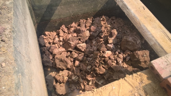 Theo anh Cường, chiều 19/3, gia đình anh thuê thợ về xây cất căn nhà mới ở tiểu khu Nam Tiến. Khi đang hút bể phốt phía cuối mảnh đất, anh Cường và nhóm thợ bàng hoàng phát hiện hộp sọ người phía dưới. Tiếp tục hút nước, họ nhìn thấy nhiều mảnh xương cốt rời rạc.