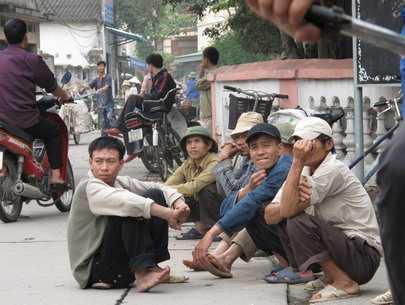 Thấy tôi giống những người đến thuê lao động, lập tức hơn chục người kéo tới vây quanh. Một cậu thanh niên chừng khoảng ngoài 20 tuổi nhanh nhảu: “Anh cần làm gì, ở đâu?” Chúng tôi còn chưa kịp trả lời thì một bác đứng ngay cạnh nói luôn: “Ở đây chúng tôi nhận làm tất cả các công việc từ chuyển nhà, đào móng, xây nhà… cho tới những việc vặt vãnh như dọn dẹp nhà cửa”. Khi chúng tôi đặt vấn đề là cần nhiều người làm với lại địa điểm làm việc khá xa thì bác này cho biết: “Xa mấy chúng tôi cũng đi được, miễn là các anh cho chúng tôi địa chỉ và số điện thoại để liên lạc.”