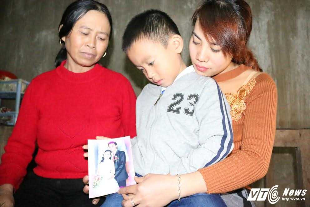 Mẹ cùng vợ và con trai anh Vinh đau buồn sau khi nhận tin anh gặp nạn nơi đất khách quê người