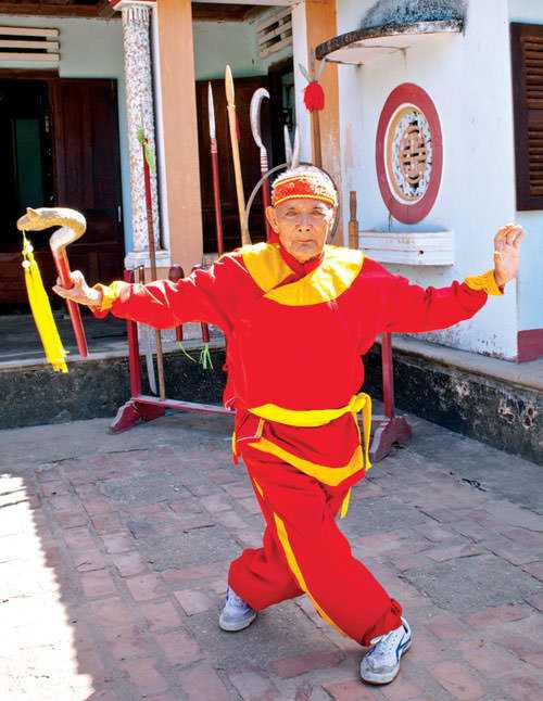 Lão võ sư năm nay đã 87 tuổi, sống ở xã Bình Nghi, huyện Tây Sơn, Bình Định. Thấy chúng tôi tò mò về Độc xà thám nguyệt, ông chậm rãi giải thích bằng chất giọng Bình Định không lẫn vào đâu được: “Độc xà thám nguyệt hiểu nôm na là một con rắn ngóc đầu lên dòm (nhìn) trăng, đó là tuyệt chiêu mà tui đã dày công khổ luyện từ thời trai trẻ”. Nói xong, ông dẫn chúng tôi ra trước hiên nhà, nơi vẫn còn dấu tích một trận so tài kỳ lạ.