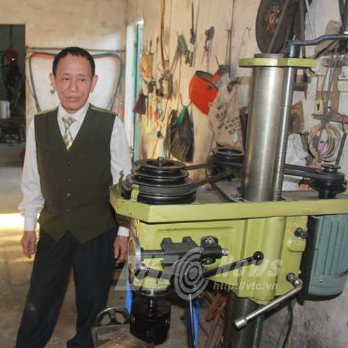 | Ông Chuốt trong xưởng cơ khí của mình |