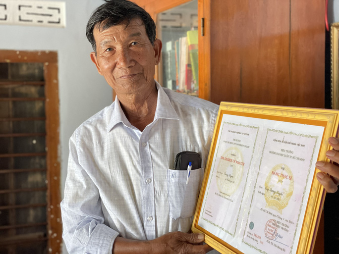 "Mê học lắm, tôi cảm thấy lúc nào cũng thiếu kiến thức nên cứ đào sâu nghiên cứu. Khi thi tuyển vào thạc sĩ cũng khó khăn lắm, nhiều người rớt nhưng số phận cho tôi đậu. Thế là lại đèn sách hơn 3 năm để học thạc sĩ. Người ta học 2 năm mà tôi phải 3 năm vì nhiều chứng chỉ khó so với tuổi già của tôi. Hơn thế, có năm mùa màng thất bát, tôi phải về để vực lên lại"- ông Tuyển kể.