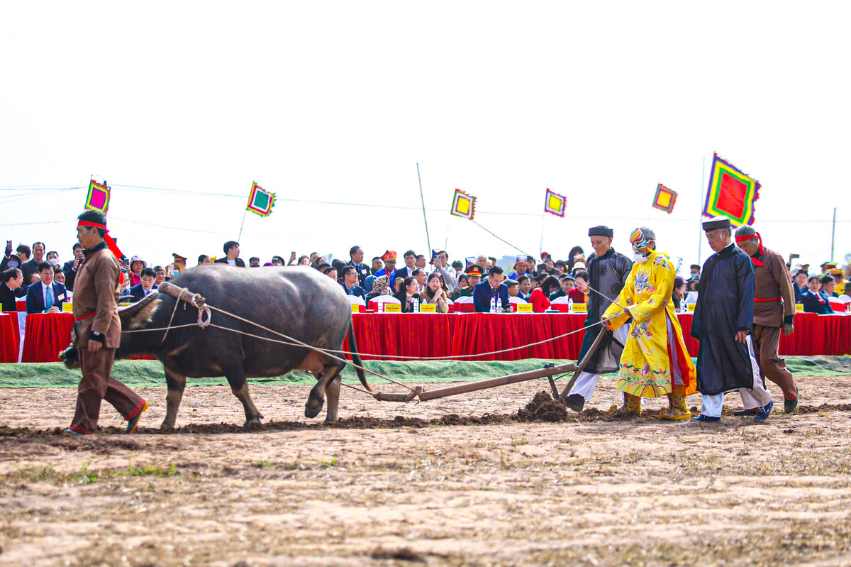 Sau nghi lễ dâng hương lên đàn tế thần nông, linh vị vua Lê và các vị phúc thần, bô lão Nguyễn Ngọc An (75 tuổi, ở thôn Linh Trung, xã Tiên Sơn) thực hiện nghi lễ nhập linh khí quân vương, bước xuống đi những sá cày đầu tiên mở hội Tịch điền.