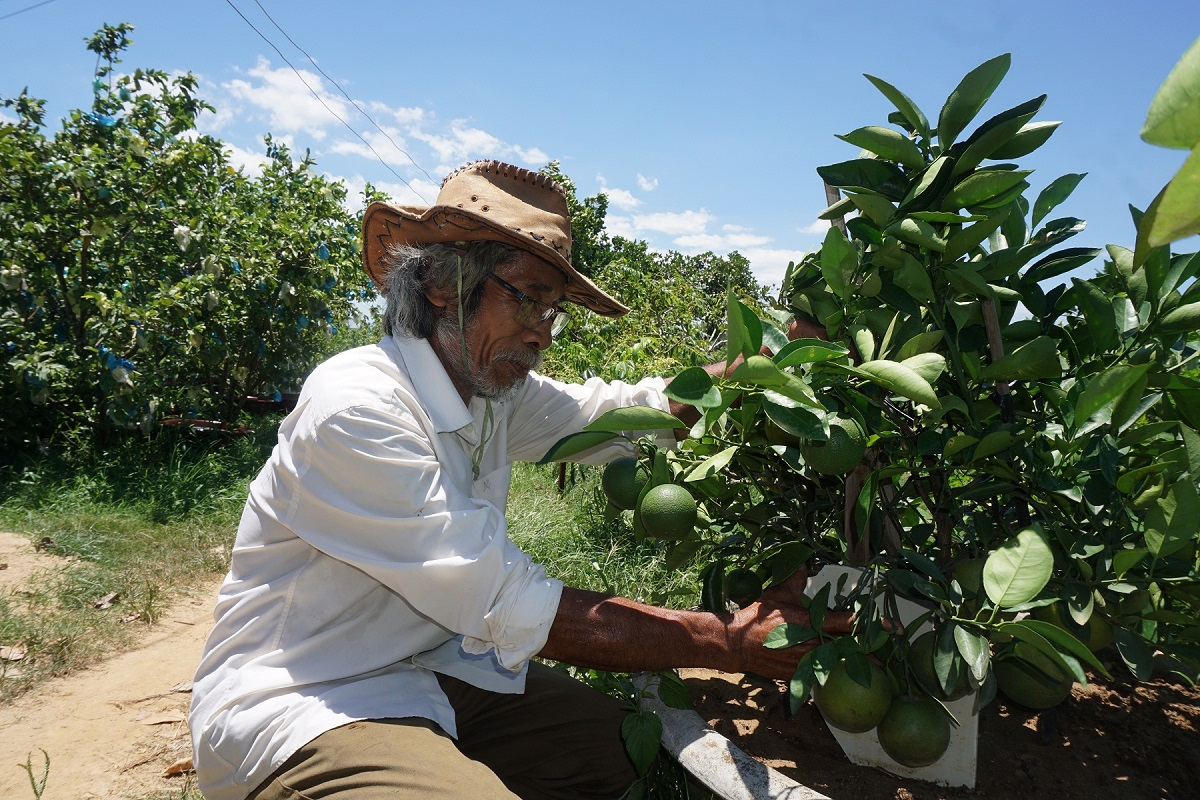 Vốn có kinh nghiệm trồng cây ăn quả, ông Tám cần mẫn nhân giống, cắt ghép cây để cho ra loại bưởi mang hương vị riêng biệt mà chỉ có ở vườn của Tám Râu (biệt danh của ông Tám). Bên cạnh đó, ông Tám còn trồng cam, quýt và một số loài hoa hồng ngoại để thu hút khách du lịch đến khám phá. Chia sẻ về điều này, ông nói: “Vườn cây có ổi, xoài, mít thì quen thuộc với mỗi người quá rồi. Cho nên, tôi muốn trồng thêm các loại cây khó chăm sóc ở miền Trung, như thế thì mới tạo nên cái mới, cái lạ cho người ta thưởng thức”.
