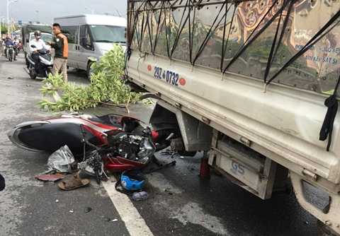 Tại hiện trường, chiếc xe máy của thanh niên nói trên vỡ nát phần đầu, hư hỏng nặng, nằm sát gầm xe tải. Vụ tai nạn cũng khiến tuyến đường dẫn lên cầu Vĩnh Tuy ách tắc kéo dài.