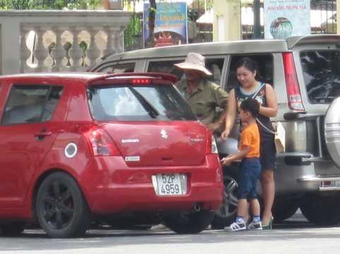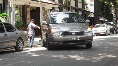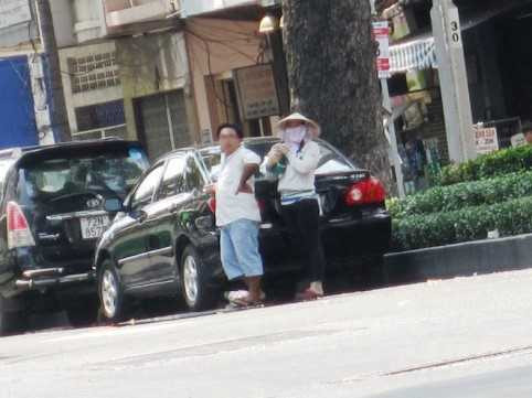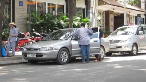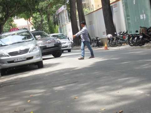 | Đường Lê Văn Hưu (P.Bến Nghé, Q.1), hễ có xe ô tô chạy qua, ngay lập tức có một người đàn ông đứng tuổi, chạy ra giữa đường ngoắc xe. |