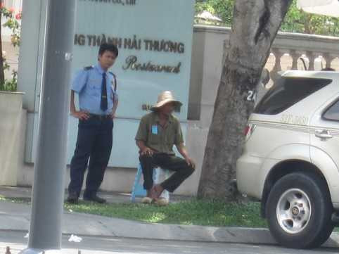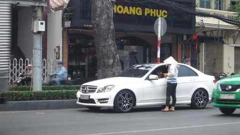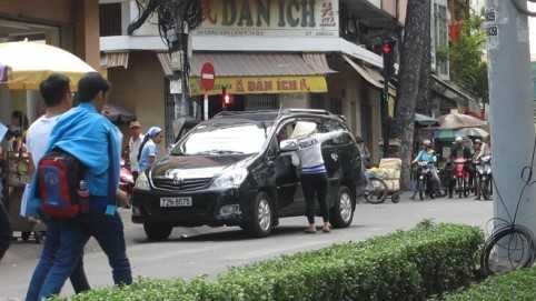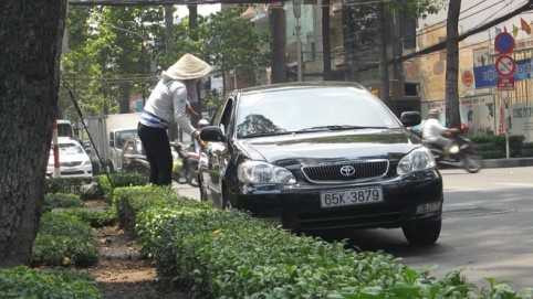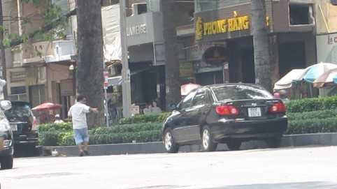 | Tương tự, ở góc đường Lê Duẩn - Nguyễn Bỉnh Khiêm, P.Bến Nghé, Q.1 cũng có một người đàn ông mặc đồ mặt mày bặm trợn hướng dẫn đậu xe dưới lòng đường và trên lề đường (có kẻ ô lớn dành cho ô tô). |