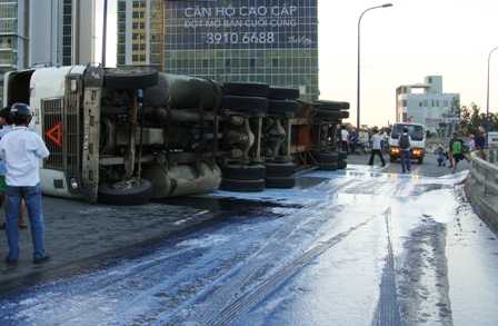 Điển hình như vụ lật xe vào ngày 11/8/2011. Trong vụ tai nạn này, một chiếc xe container chở 34 tấn hóa chất đã lật tại khúc cua trên cầu khiến hàng chục tấn hóa chất đổ tràn mặt đường.