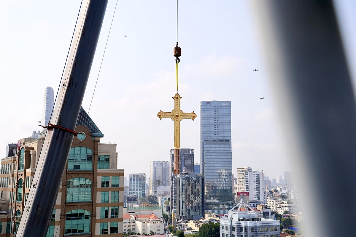 Sáng 19/3, tại khuôn viên Nhà thờ Đức Bà (TP.HCM), Tổng giáo phận TP.HCM làm lễ đưa hai Thánh giá mạ vàng lên tháp chuông. Đây là sự kiện được đông đảo bà con giáo dân chờ đợi khi hai thánh giá là biểu tượng của giáo hội Công giáo, đồng thời có ý nghĩa đặc biệt khi thay thế hai Thánh giá cũ tuổi đời gần 130 năm.