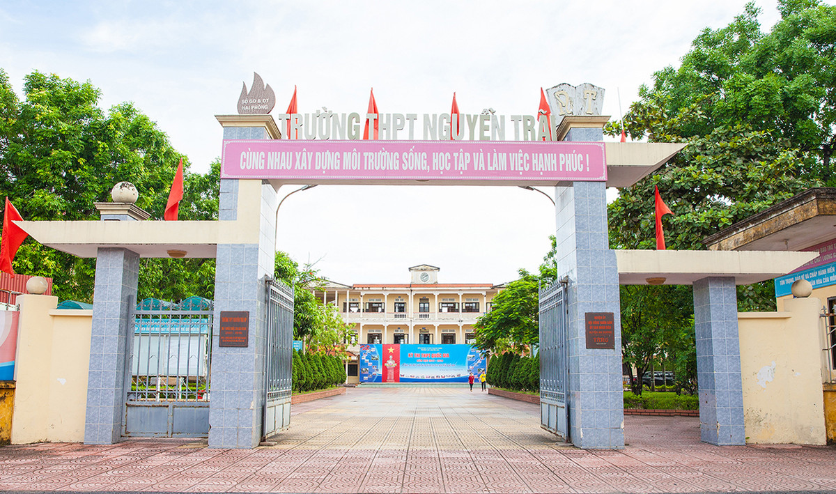 Trường THPT Nguyễn Trãi (huyện An Dương, Hải Phòng) nơi trước đó bị cáo Nguyễn Thị Phương Hoa và Nguyễn Thị Dung làm việc. (Ảnh: Facebook Trường THPT Nguyễn Trãi)