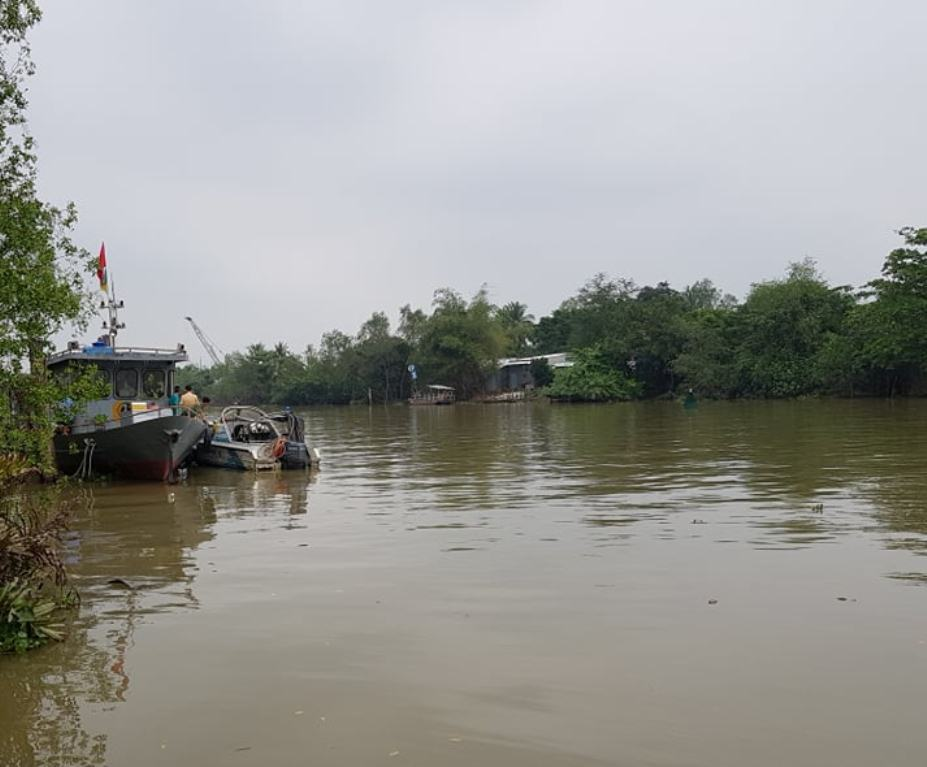 Do sóng to gió lớn và lực hút của nước, sà lan đang di chuyển nên ca nô va chạm dẫn đến bị lật úp.