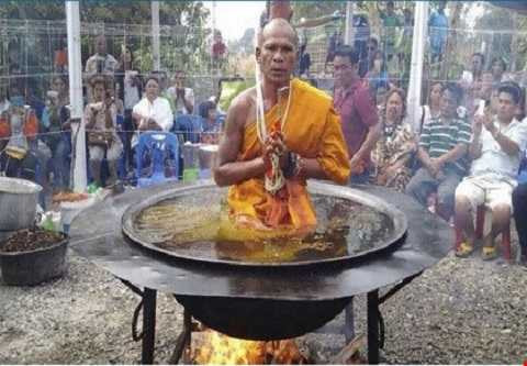 Sư ở Thái Lan ngâm mình trong chảo dầu