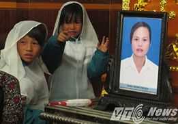 Con nạn nhân Trương Thị Mây (33 tuổi, thôn Thiện Châu, xã Nam Thịnh, huyện Tiền Hải, Thái Bình) bên linh cữu mẹ |