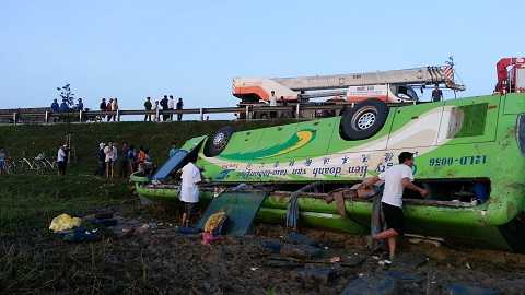 | Nạn nhân bị thương trong vụ xe chở 35 người bị lật |