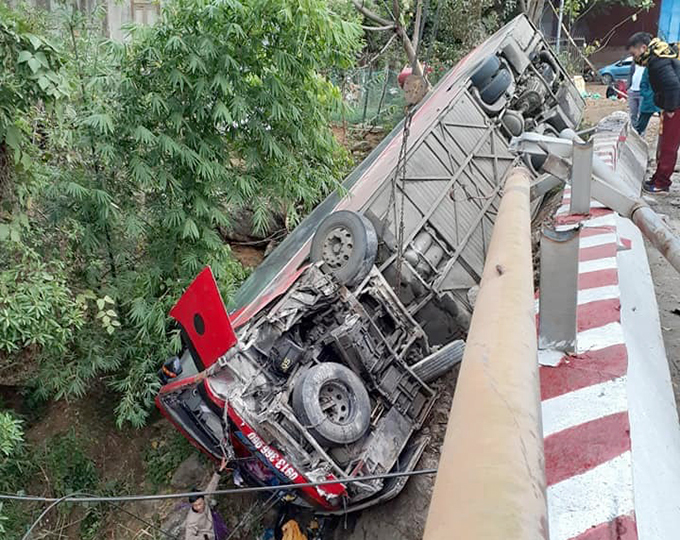 Vào khoảng thời gian trên, xe khách loại 45 chỗ biển kiểm soát 27B chạy hướng Hà Nội - Sơn La đang vào cua thì đâm vào lan can cầu Nhị Hổ lao xuống mương nước sâu khoảng 5m.