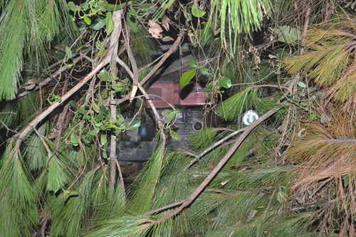 | Chiếc xe bị tuột và rơi xuống vách đồi khoảng 5m |