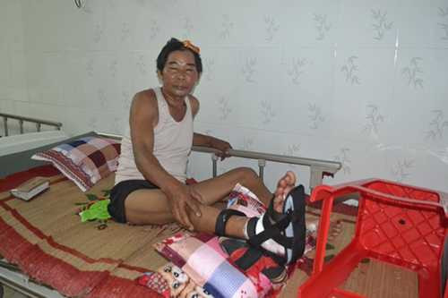 | Ông Thành bị chấn thương sọ não kín, chân chảy nhiều máu |