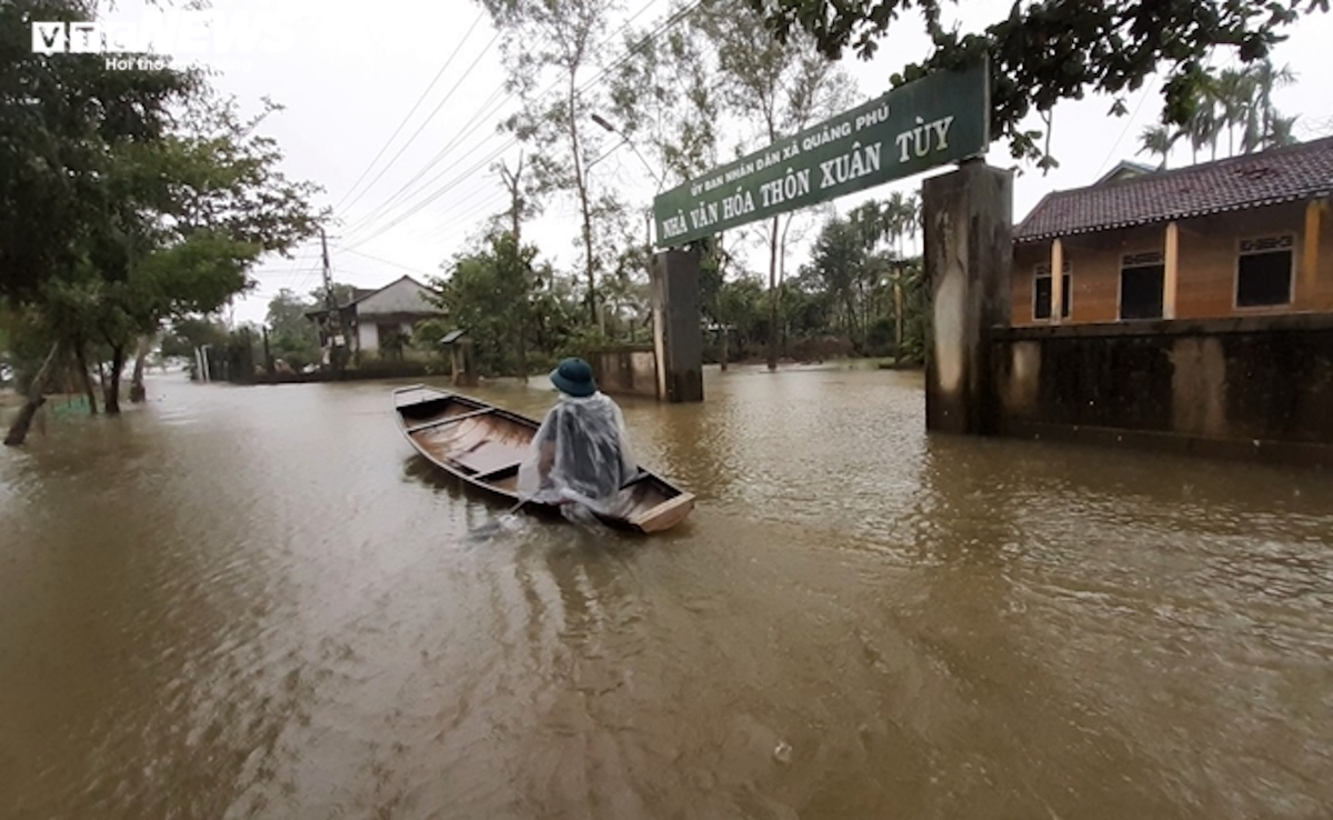 Nhiều địa phương ở huyện Quảng Điền (Thừa Thiên - Huế) vẫn còn ngập sâu do nước trong bối cảnh bão số 13 chuẩn bị đổ bộ và có thể gây ra một đợt lũ mới.