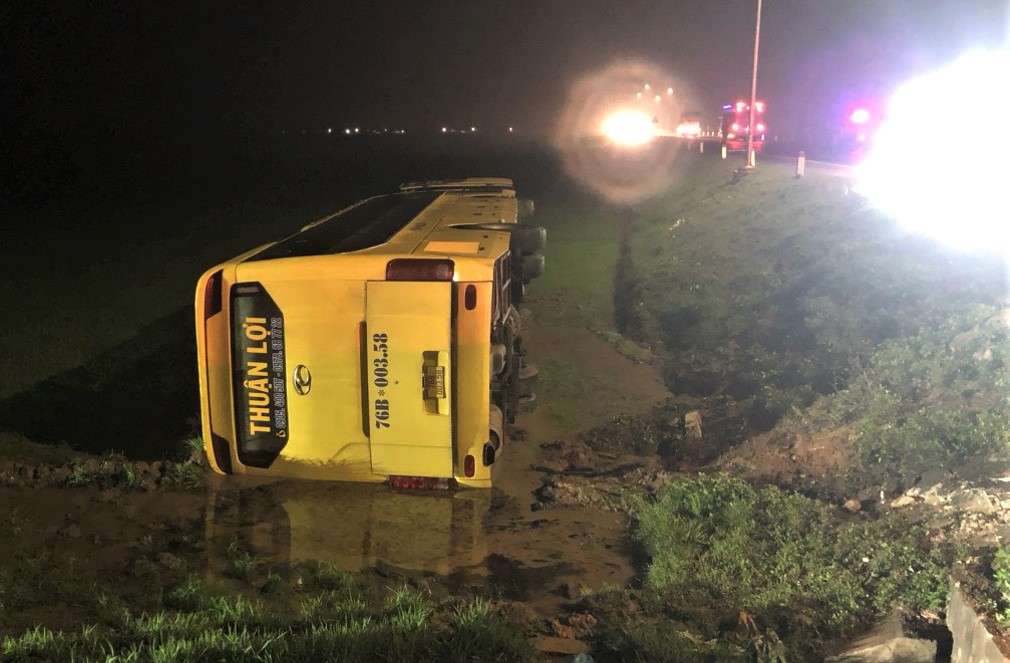 Theo thông tin ban đầu, hồi 19h10 phút cùng ngày, xe khách mang BKS 76B-003.58 do tài xế Lâm Quang Tuân (SN 1983, trú tại Bình Nghĩa, Bình Sơn, Quảng Ngãi) điều khiển, chở 39 người từ Quảng Ngãi đi Hà Nội.