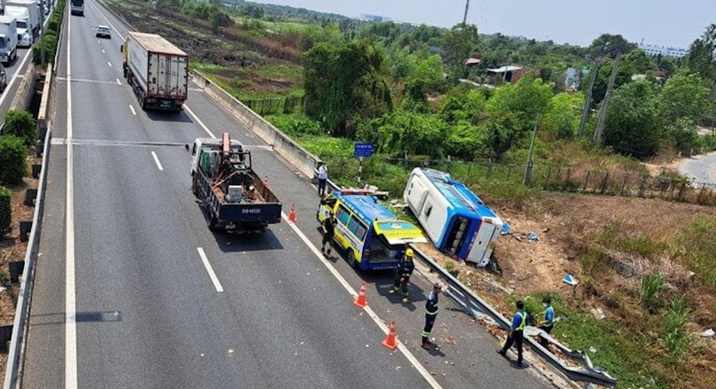 Thông tin ban đầu, khoảng 11h30 ngày 9/3, xe khách 29 chỗ ngồi mang biển số tỉnh Bến Tre chạy trên cao tốc TP.HCM - Trung Lương theo hướng TP.HCM về Tiền Giang.